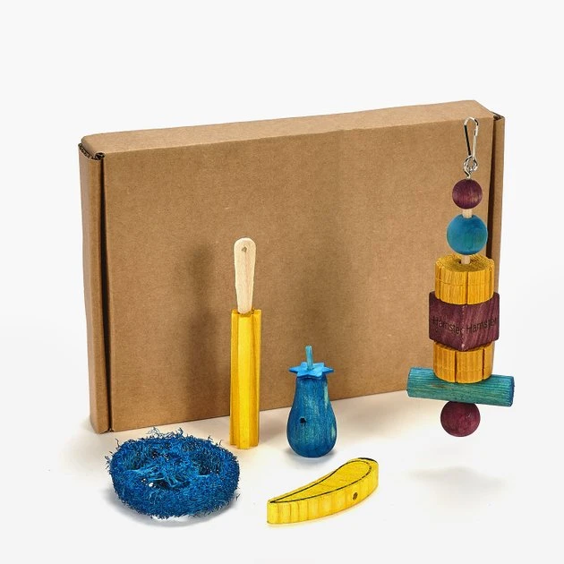 Give your pint-sized pal treats he’ll squeal for with the Kaytee Chew & Treat Hamster Toy. This assorted pack comes with a variety of toys that satisfy your furry friend’s need to nibble and gnaw. The crunchy textures and eye-catching shapes are paw-fect for cleaning and trimming teeth and make for great training tools!