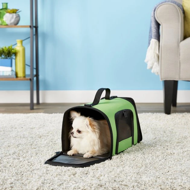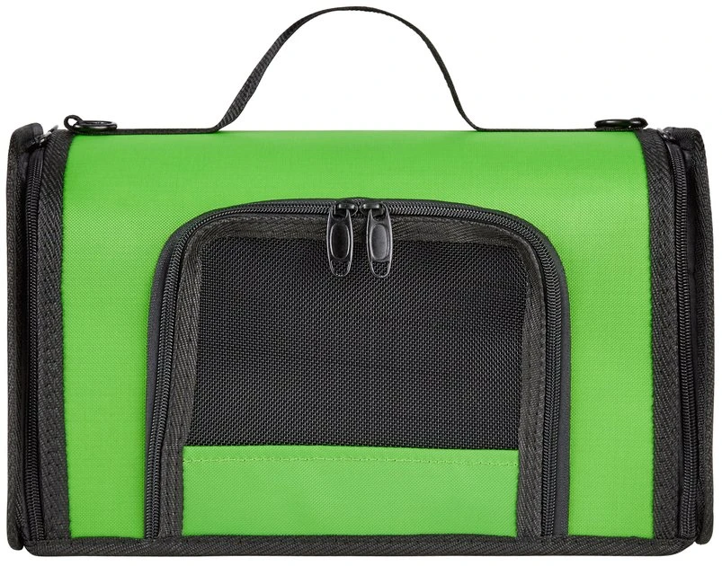 - Fabric-covered carrier is specifically designed for easily transporting small pets and birds.
