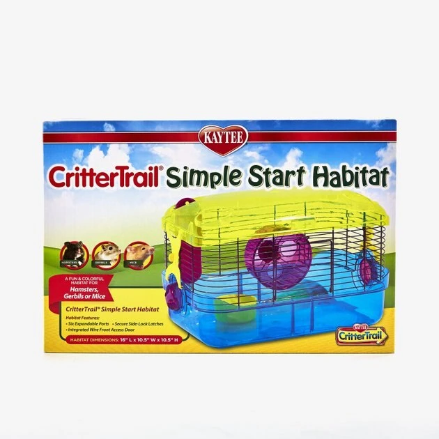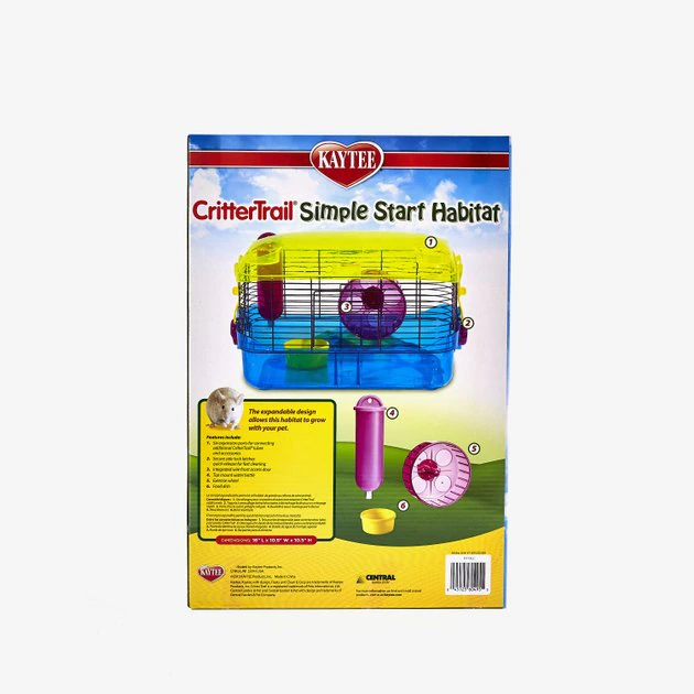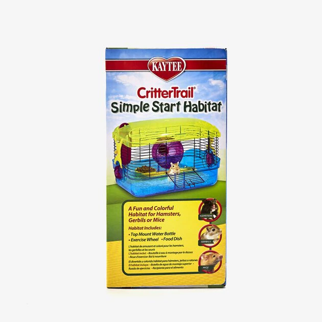 Get everything you need for your little guy with the Kaytee Critter Trail Simple Start Habitat. This fun and valuable habitat for small animals is crafted to help you set up an abode for your amigo. It includes a top-mount water bottle, exercise wheel, food dish and six accessory attachment points. This starter habitat features quick-release twist-knob side latches and an integrated wire front door for easy and convenient access. It’s paw-fect for your hamster, dwarf hamster, gerbil, mouse and more.