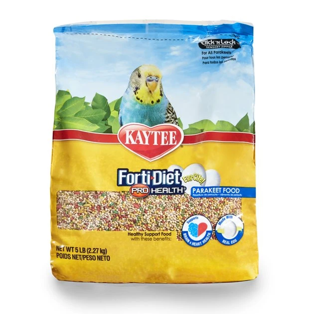 Feed your parakeet a diet rich in protein from real egg crumbles with Kaytee Egg-Cite! Forti-Diet Pro Health Parakeet Bird Food. Parakeets and other caged birds need a well-balanced, low-fat, healthy diet with vitamins, minerals and protein to stay healthy. Kaytee Egg-Cite! Forti-Diet Pro Health Parakeet Bird Food provides those nutrients with real egg crumbles, a mix of grass and plant seed and pellets fortified with vitamins and minerals. It is highly palatable and is designed to be your bird’s primary food source, not a supplement like other egg-based bird foods. Feed one to three tablespoons a day and discard any uneaten portions before next feeding.