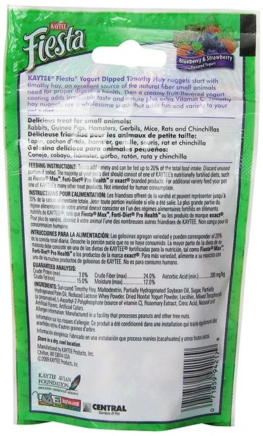 Kaytee Fiesta Blueberry & Strawberry Flavored Yogurt Dipped Timothy Hay Small Animal Treats