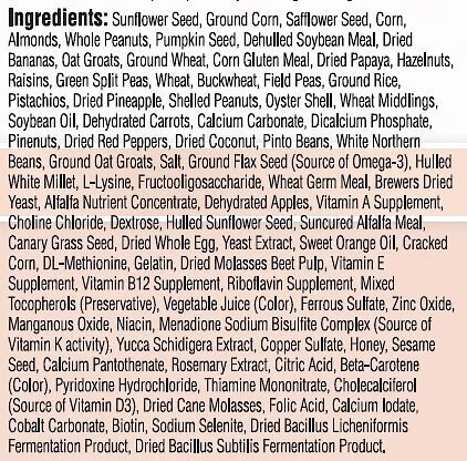 Bananas, Oat Groats, Ground Wheat, Corn Gluten Meal, Dried Papaya, Hazelnuts,