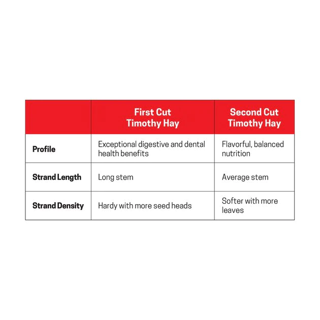 - Hand-selected 1st cut timothy hay offers high-quality nutrition and proper leaf-to-stem ratio.