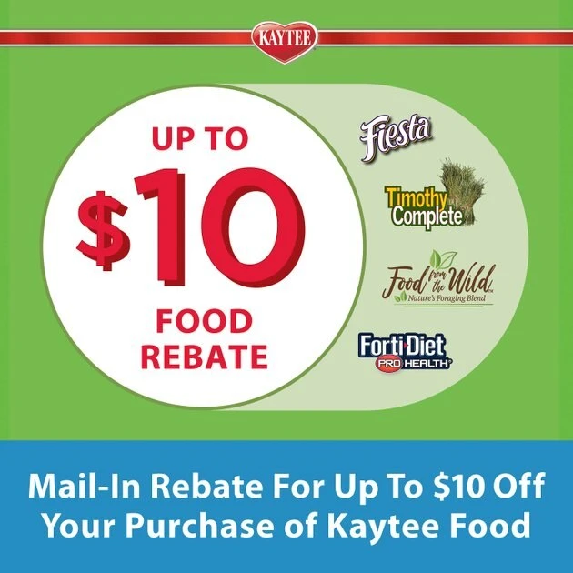 Habitat 30”x18”x16.5”, rebate for up to $10 off any Kaytee Guinea food, Clean & Cozy bedding, water bottle and food dish.