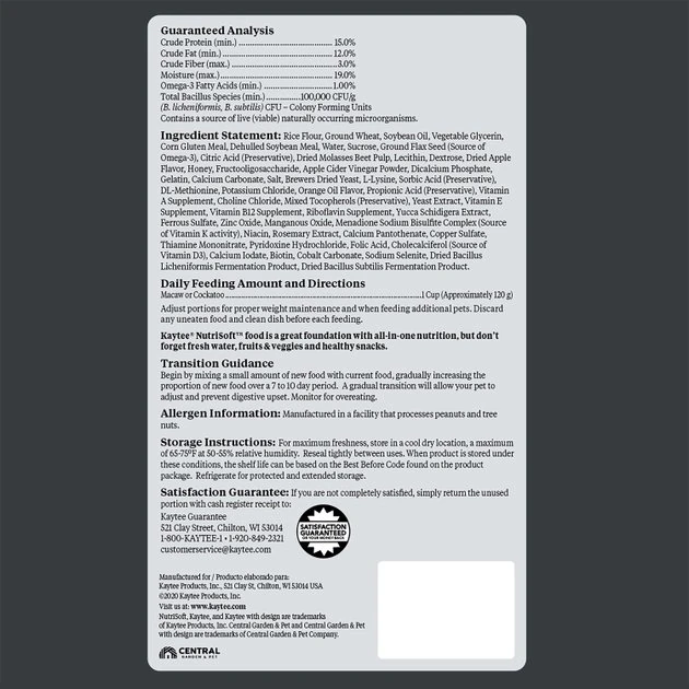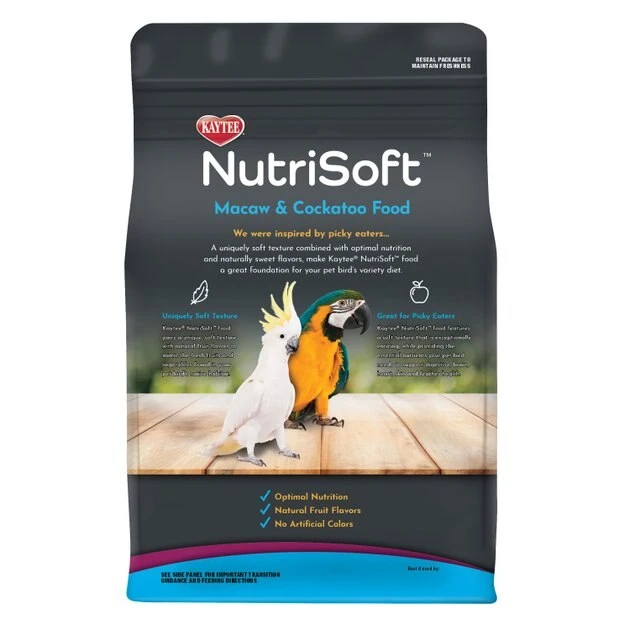 If your pet bird is a picky eater, then try Kaytee NutriSoft Macaw & Cockatoo Bird Food. This nutritious bird food has a soft texture, similarly to fruits and veggies that your bird buddy would eat in the wild. And not only is it nutritious, but it is also delicious because it features the natural fruit flavors your feathered friend instinctually craves. And since every bite is loaded with optimum nutrition, you can feel confident that your bird is getting the vitamins and minerals he needs!
