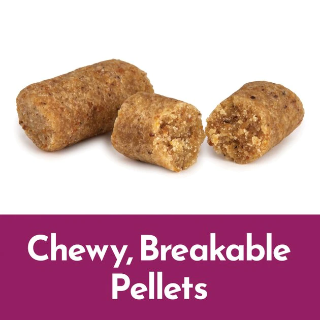 Rice Flour, Ground Wheat, Vegetable Glycerin, Corn Gluten Meal, Dehulled Soybean Meal, Soybean Oil, Water, Sucrose, Ground Flax Seed (Source of Omega-3), Citric Acid (Preservative), Dried Molasses Beet Pulp, Lecithin, Dextrose, Gelatin, Dried Apple, Honey, Fructooligosaccharide, Dried Vinegar, Dicalcium Phosphate, Calcium Carbonate, Salt, Brewers Dried Yeast, L-Lysine, Sorbic Acid (Preservative), DL-Methionine, Potassium Chloride, Orange Oil, Propionic Acid (Preservative), Vitamin A Supplement, Choline Chloride, Mixed Tocopherols (Preservative), Yeast Extract, Vitamin E Supplement, Vitamin B12 Supplement, Riboflavin Supplement, Yucca Schidigera Extract, Ferrous Sulfate, Zinc Oxide, Manganous Oxide, Menadione Sodium Bisulfite Complex (Source of Vitamin K activity), Niacin, Rosemary Extract, Calcium Pantothenate, Copper Sulfate, Thiamine Mononitrate, Pyridoxine Hydrochloride, Folic Acid, Cholecalciferol (Source of Vitamin D3), Calcium Iodate, Biotin, Cobalt Carbonate, Sodium Selenite, Dried Bacillus Licheniformis Fermentation Product, Dried Bacillus Subtilis Fermentation Product.