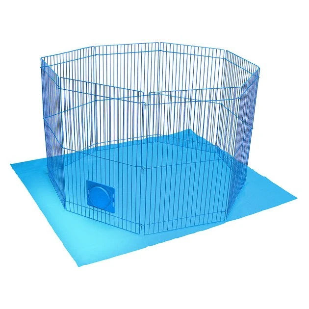 Give your pal plenty of room to explore and play with the Kaytee Pet-N-Playpen for Small Animals. Simply put the connectable panels together and you’ll have an area over 9 square feet for interactive or solo play for your furbaby, while you keep him safely enclosed. You can set it up easily and fold it down for quick storage, and is great for ferrets, rabbits, guinea pig and others. It’s great for indoor and outdoor use, and includes optional connector to add passageways and more. Plus, it includes a plastic mat that protects your floors from any messes.