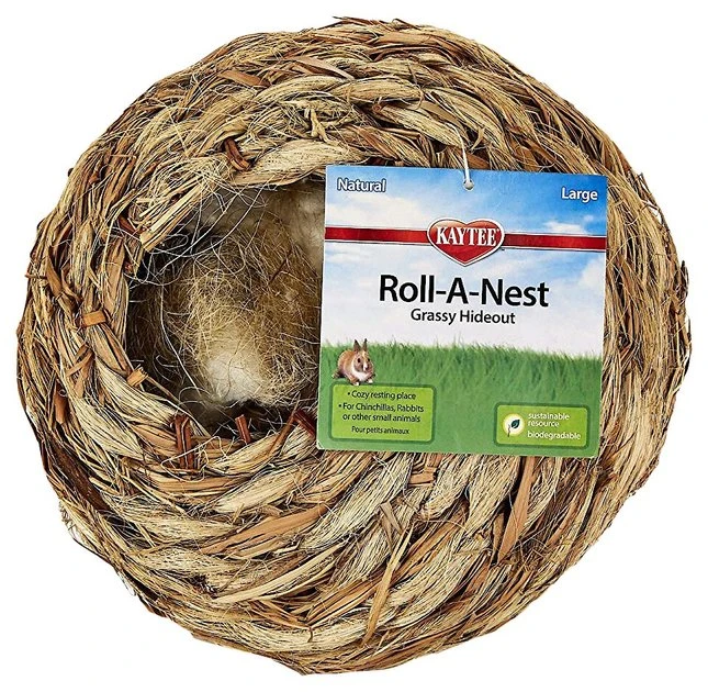 Kaytee’s Roll-A-Nest Grassy Hideout provides your pet with a cozy and comfortable place to rest. It’s made from 100% biodegradable, sisal fibers that have been hand-woven onto a sturdy frame. And since they are natural, the fibers are safe for your pet to graze and chew on. This pre-made nest is suitable for rabbits, chinchillas and other small animals like dwarf guinea pigs, ferrets and pet rats. So, encourage your pet’s natural nesting instincts with this eight-inch diameter Roll-A-Nest Grassy Hideout!
