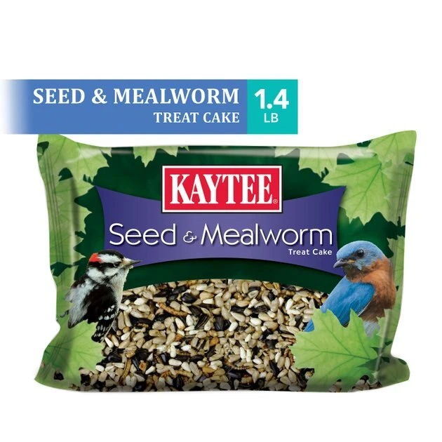 All the birds will want to visit your yard when you put out Kaytee’s Seed & Mealworm Wild Bird Treat Cake! This high-energy treat is crafted with real ingredients birds love—like hulled sunflower seed, safflower seed and dried mealworms. It’s designed to attract a variety of birds including bluebirds, cardinals, chickadees, woodpeckers, wrens, robins and more. Unlike loose seed, this earthy treat cake creates less mess and lasts longer. Place the cake in a feeder station, hang it about five feet above the ground and watch your feathered friends flock your way!