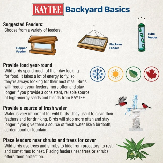 Keep feeders filled with fresh food. Discard old food before refilling and clean feeders regularly to minimize mold and bacteria. This product is only intended for feeding wild birds.