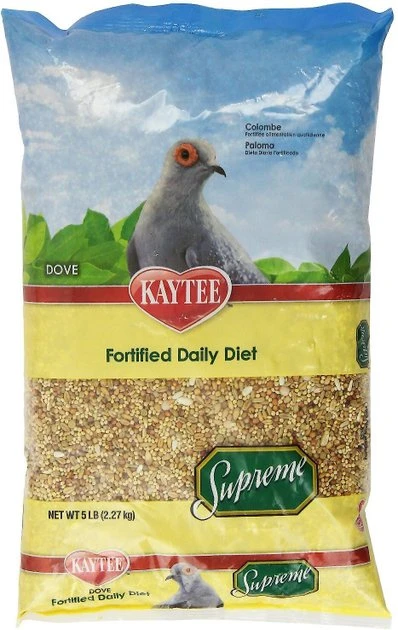 Feed your dove a high-quality, protein-packed diet with Kaytee Supreme Dove Bird Food. Doves need protein to help them grow strong and healthy. Doves eat a variety of seed, but seeds are high in fat and carbohydrates which can lead to obesity and illness. Kaytee Supreme Dove Bird Food contains safflower seed, a healthy alternative to sunflower seeds, protein-rich whole grains, fiber, oils and nutrients and fortified pellets. Feed a 1/4 cup a day and discard any uneaten portions.