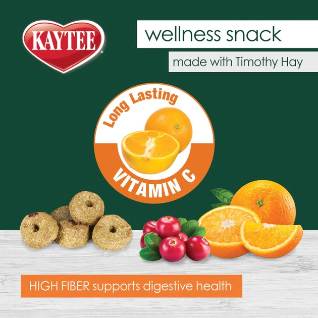 Reward your little buddy with a naturally nutritious snack— Kaytee Timothy Baked Biscuits Small Pet Treats! These scrumptious biscuits are formulated with stabilized vitamin C to support your pet’s wellness. They also contain real, whisker-licking cranberry and orange! With fiber-rich Timothy and real fruit, these fun and flavorful goodies are a great way to add tasty enrichment to your pet’s diet. They are perfect for playtime and bonding, and they satisfy your BFF’s natural desire to chew. Serve these biscuits daily as a snack for guinea pigs, chinchillas, rabbits and other small animals!