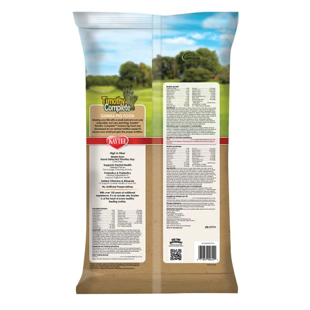 Support your little furry friend’s digestive health with this Kaytee Timothy Sensitive Digestion Complete Guinea Pig Food! Developed by an animal nutrition expert, this complete and balanced pelleted recipe is crafted with nutritious hand-selected timothy hay, plus the essential vitamins and minerals your guinea pig needs. It’s high in fiber to support digestive health and contains long-lasting vitamin C.